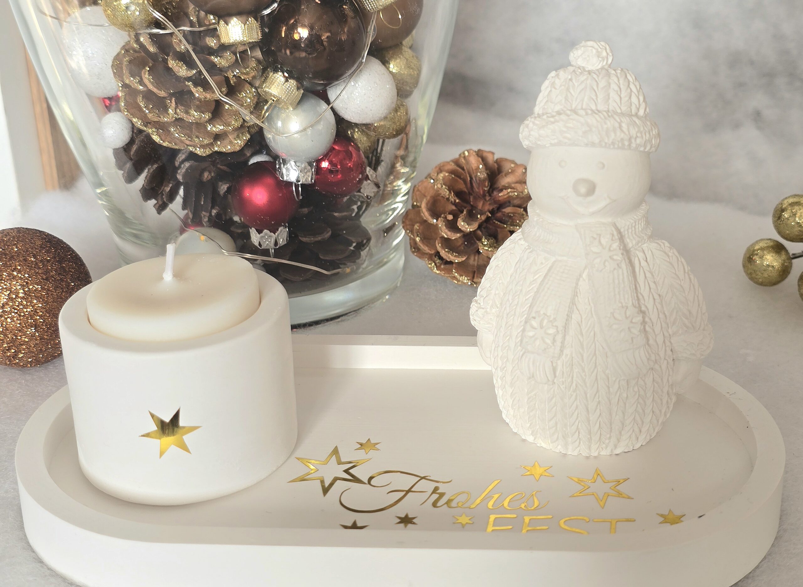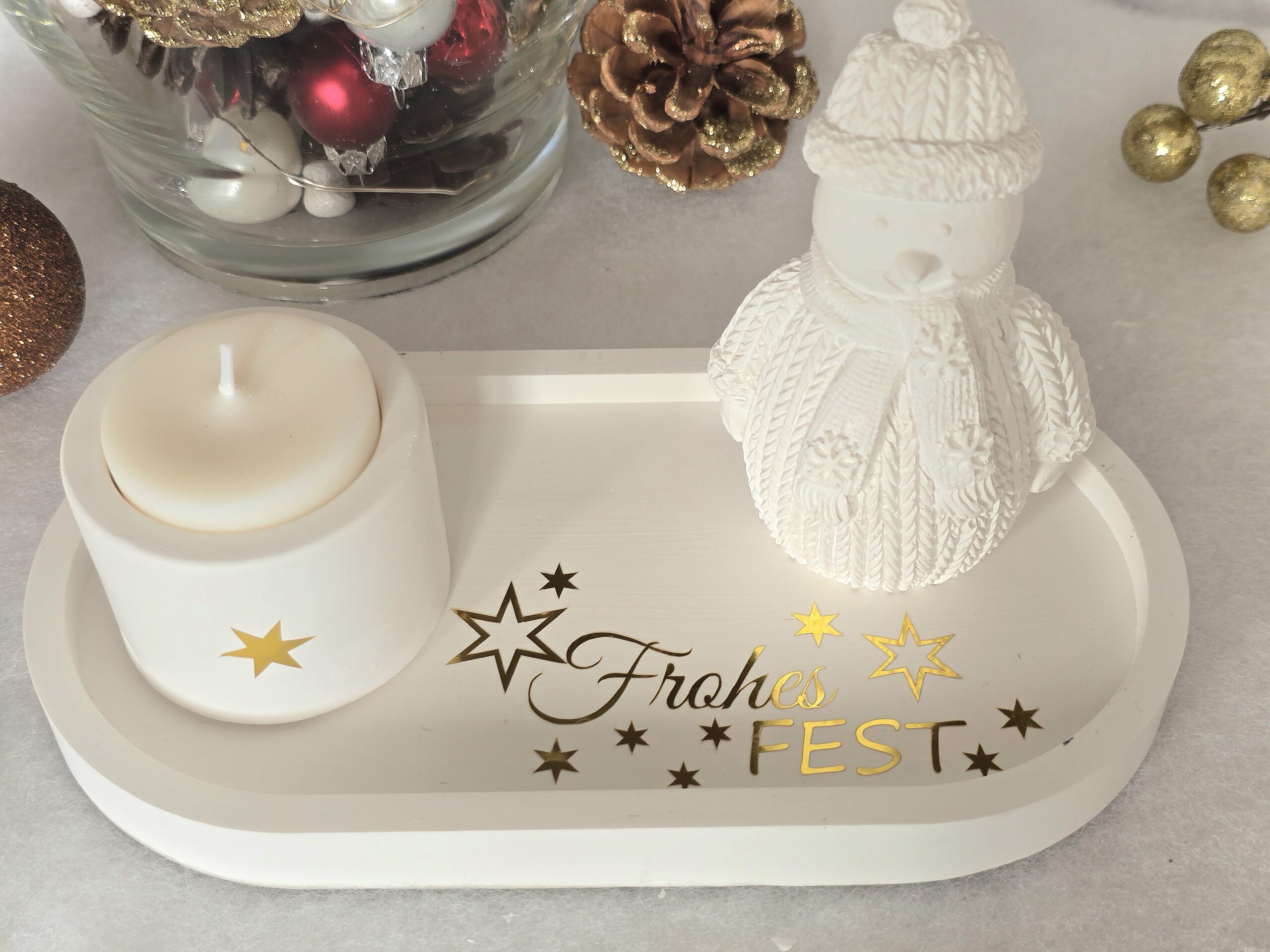 Dieses schöne Deko-Set ist ideal um sich auf die gemütliche Weihnachtszeit einzustimmen und ist auch als Geschenk oder Mitbringsel eine perfekte Wahl. Du kannst bei diesem Set alles selber schön dekorieren, es ist nichts festgeklebt.